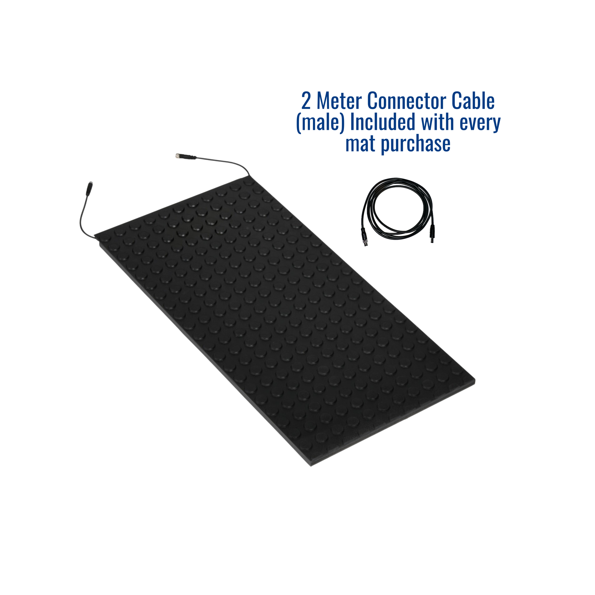 (1) 3-pin male M8 connector and (1) 3-pin female M8 connector. Included cable connects to the male M8 connector and is compatible with Plyomat 1.0, 2.0, and Just Jump Controllers.