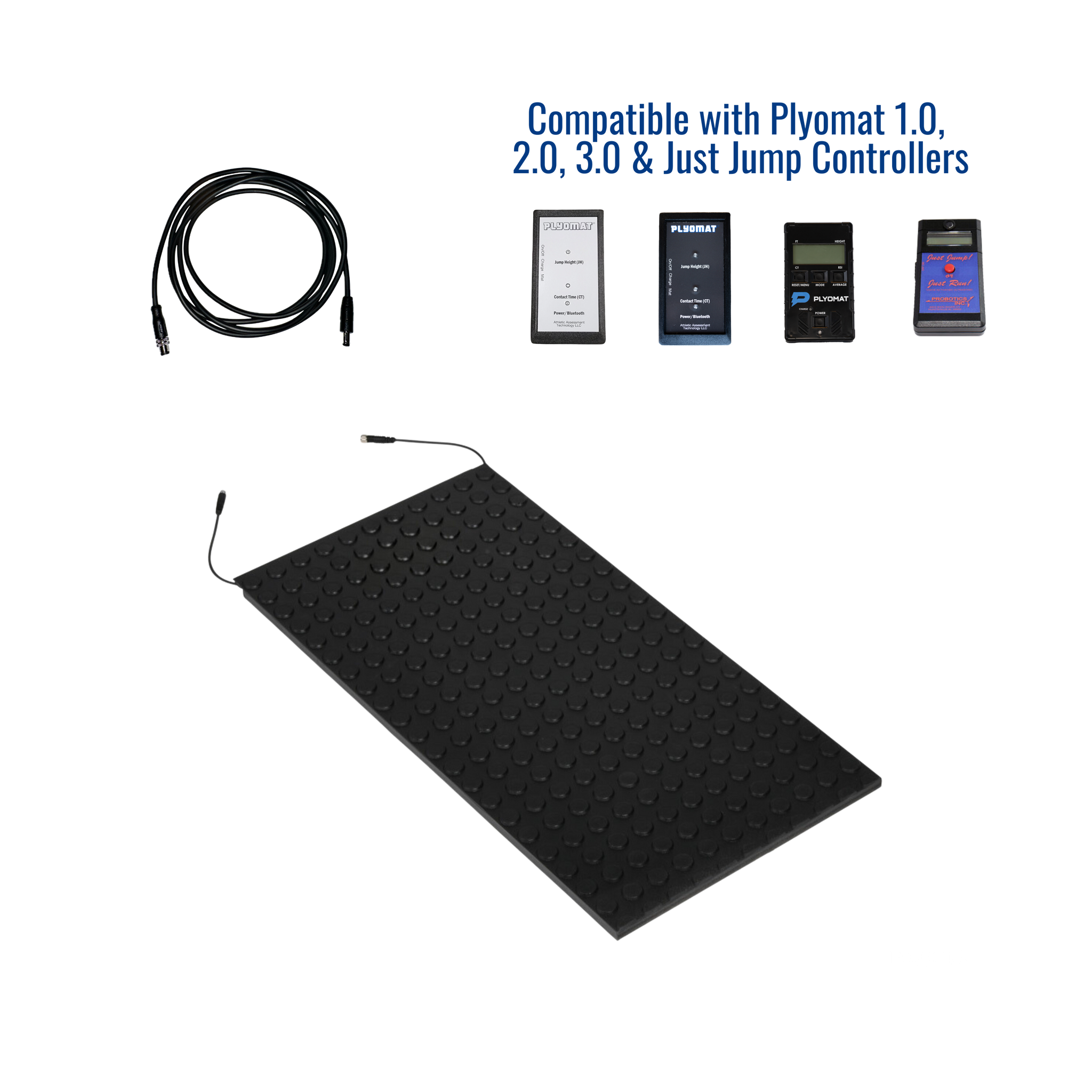 One 14" x 28" (30.5cm x 71cm) Polyurethane switch mat that require a Plyomat or Just Jump controller in order to be operable. These mats can connect to each other or be used individually with a controller. Once connected, these switch mats act as one mat and cannot measure data independently with one controller.